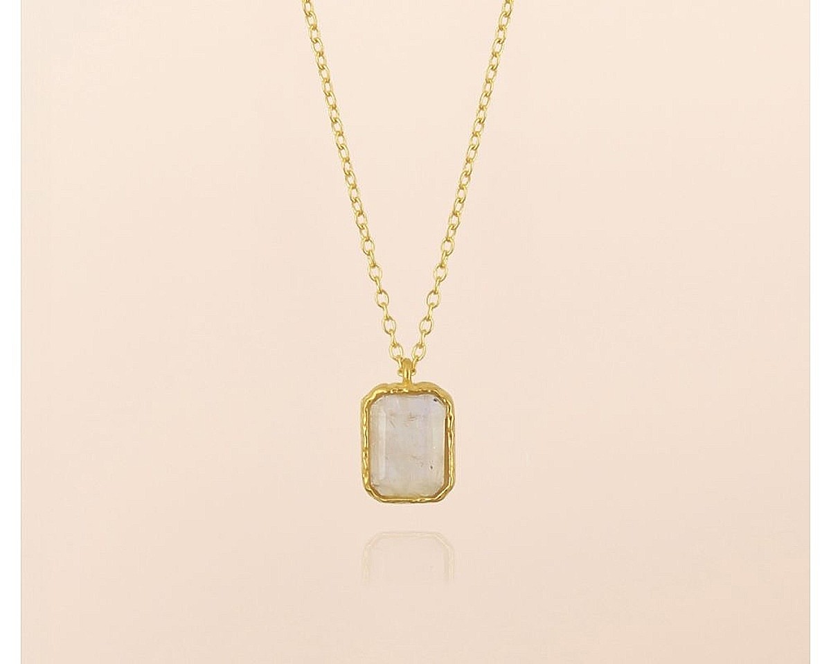 Vergulde halsketting met witte rechthoekige steen van Muja Juma