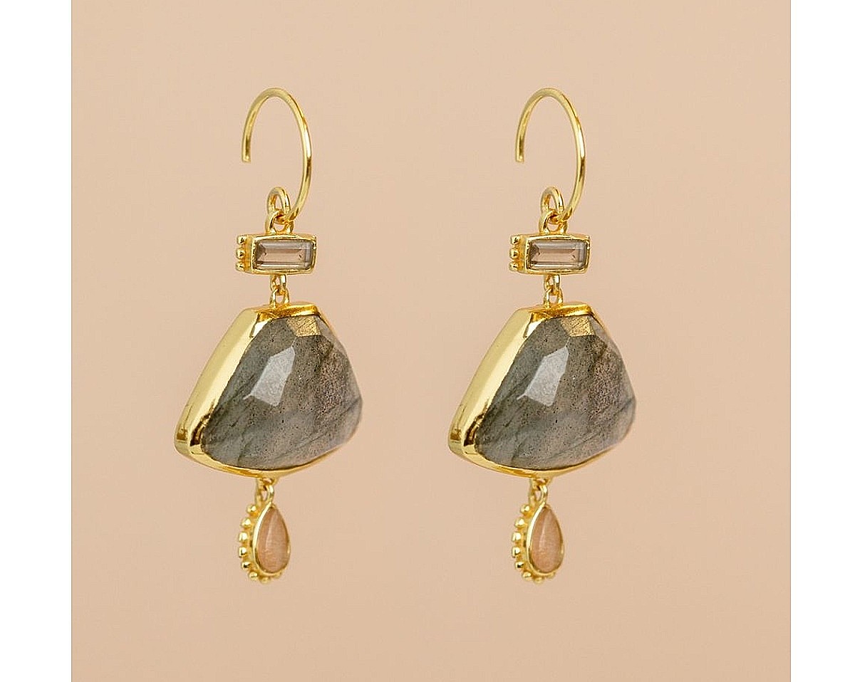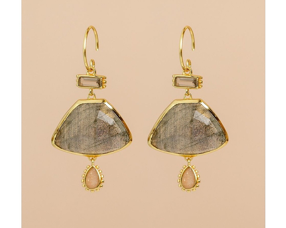 Vergulde oorringen met labradoriet van Muja Juma