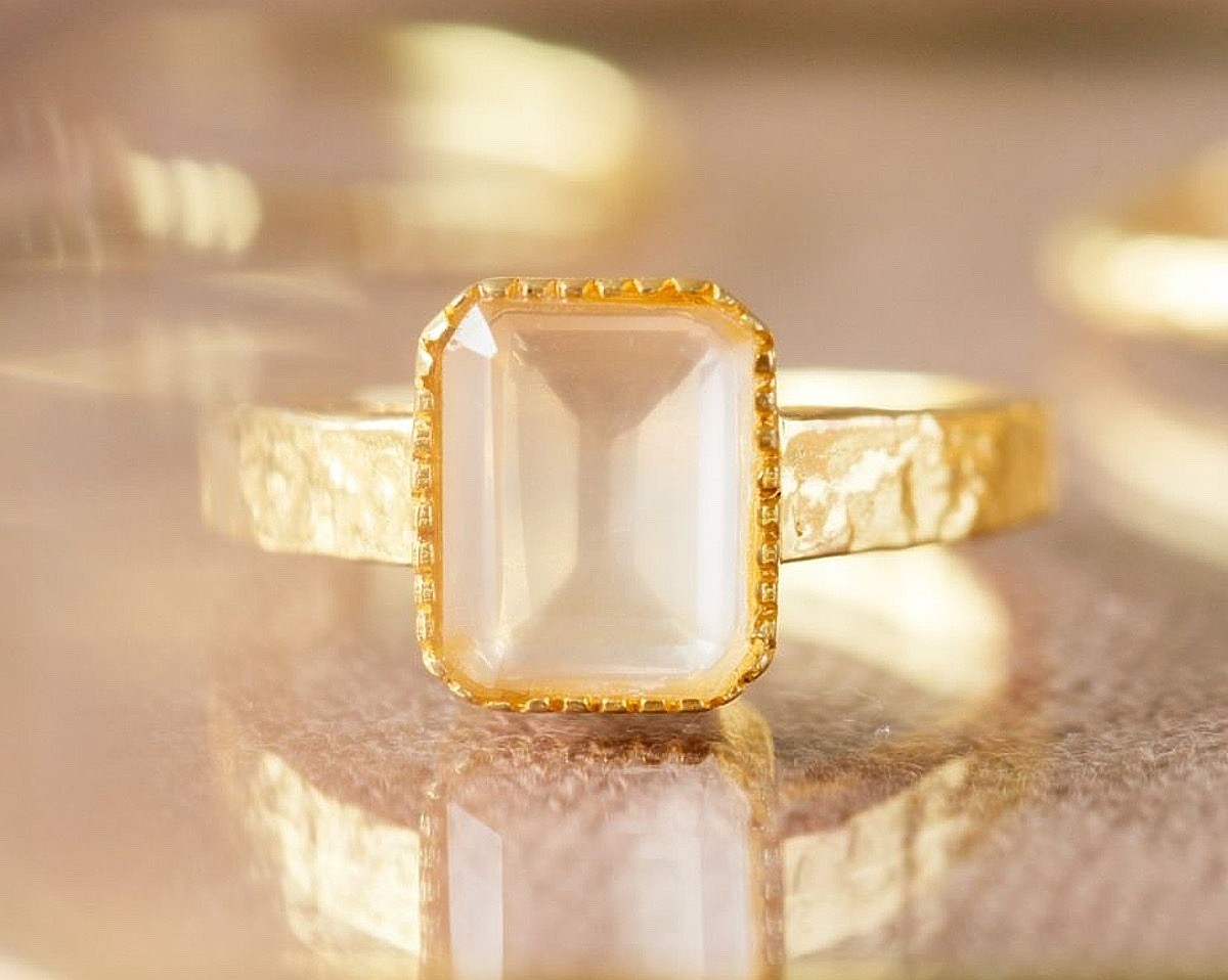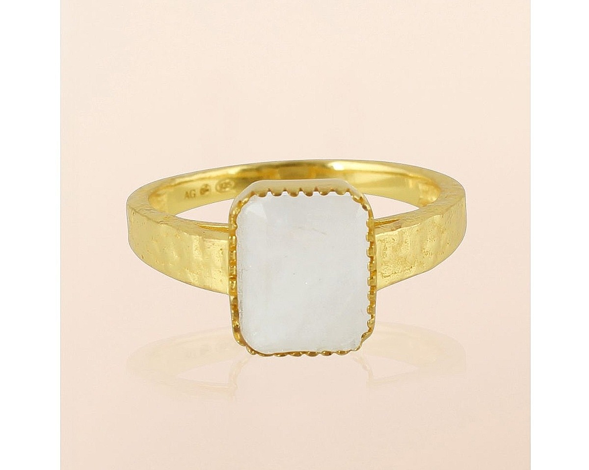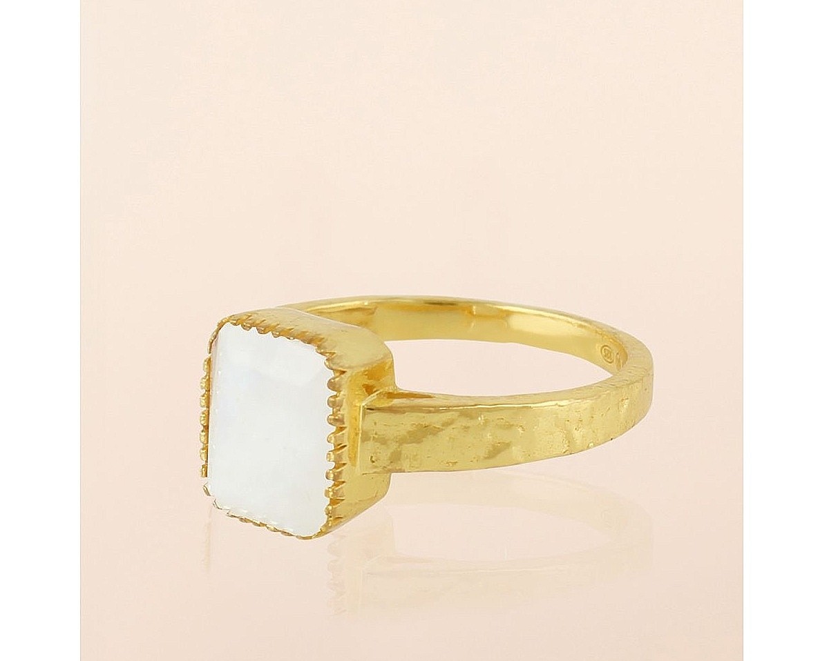 Vergulde ring met witte rechthoekige steen van Muja Juma